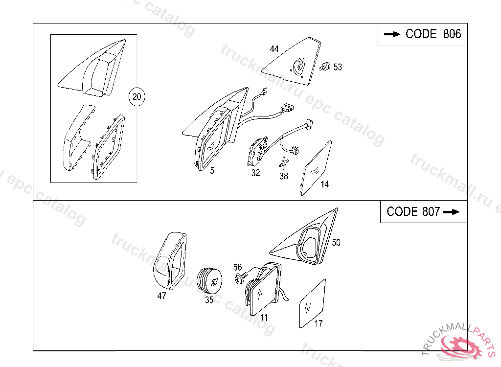 OUTSIDE REARVIEW MIRROR RIGHT, A 394036 X 000001 EXCEPT CODE 807 ALSO INSTALLED IN VEHICLE TO A 394035 WITH CODE 808