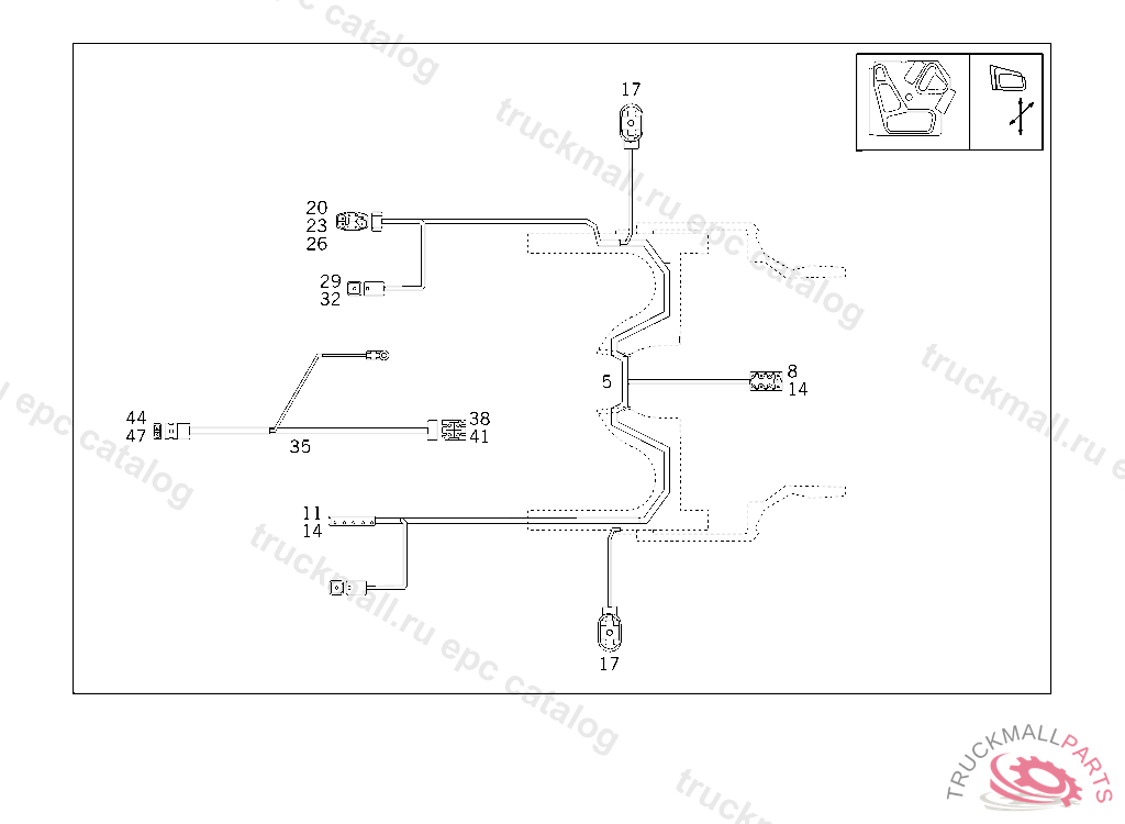 CABLE HARNESS REARVIEW MIRROR ADJUSTMENT, F 113842 EXCEPT FOR F 107603 - F 113841 WITH CODE 030 F 107603 - F 113841 WITH CODE 030