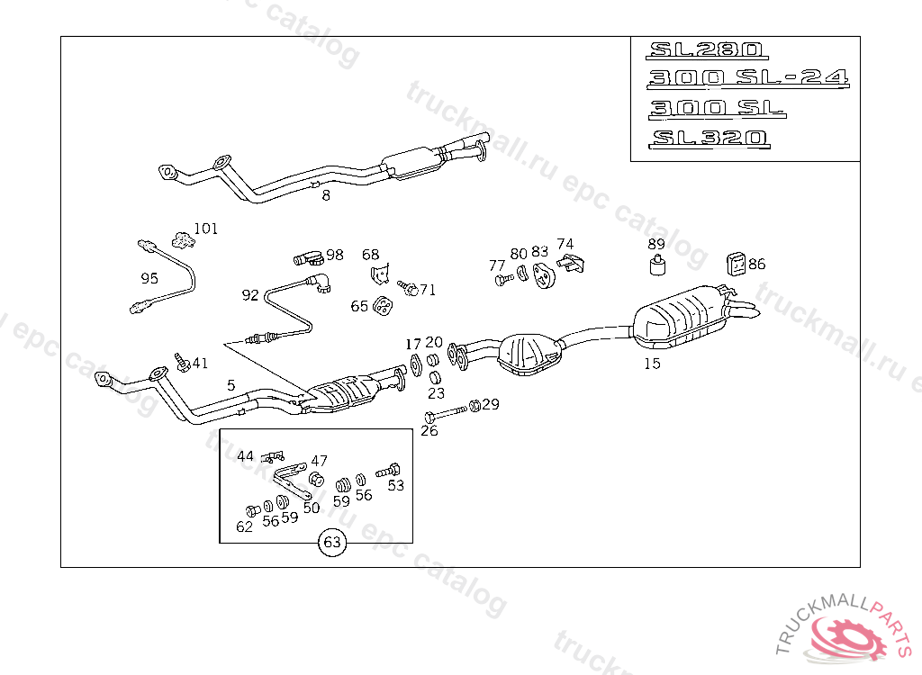 49 EXHAUST SYSTEM - 210 EXHAUST SYSTEM USED ON SIX-CYLINDER GASOLINE VEHICLES
