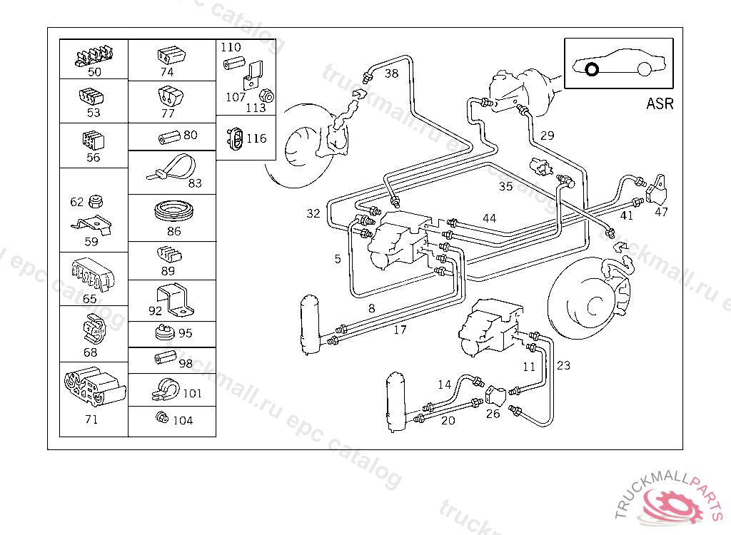 LINE FROM MASTER CYLINDER TO ADAPTER FITTING, 000 193701 003 097469 086 006508 093 007717 102,103 209243 183 013349 190 020074 193 000014 200 006559 283 001514 INAPPLICABLE TO ANTI-LOCK BRAKING SYSTEM (ABS)