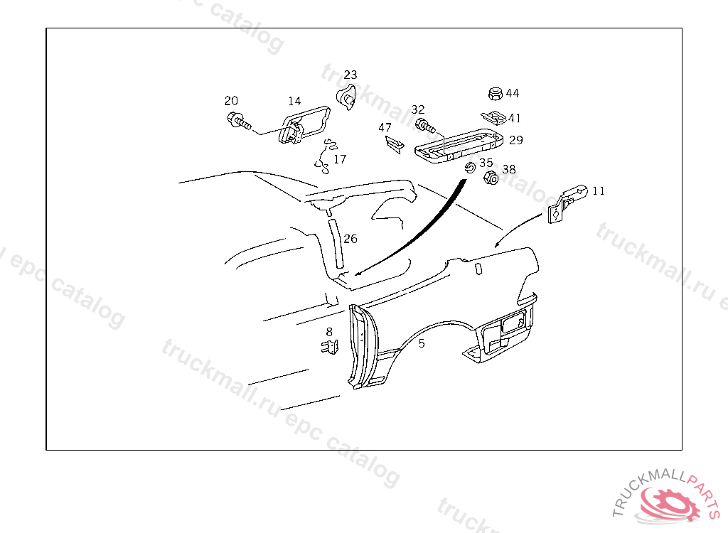 REAR FENDER , F 125157 EXCEPT CODE 806 ALSO INSTALLED IN VEHICLE FROM F 125158 WITH CODE 805, Replaced By: A1296301521, +002A1139870044