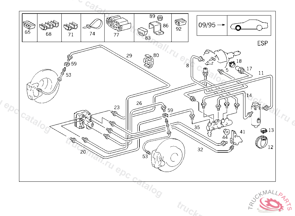 CLAMP SPACING OF BRAKE LINES, UP TO IDENT NO. A 212244 EXCEPT FOR A 187334 - A 212243 WITH CODE 867