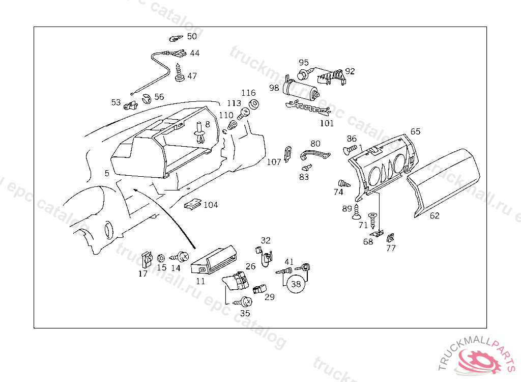 GLOVE COMPARTMENT SPECTACLE TRAY IN INSTRUMENT PANEL, UP TO CHASSIS NEW EQUIPMENT 6/91 F 038362 AUSTRALIAUP TO END MODELYEAR 91 - F 037640 EXCEPT FOR F 025627NO.9045I NO.5070I NO.8310I NO.8317I NO.8317I NO.6121I NO.3111I NO.7102I IIIIIIII