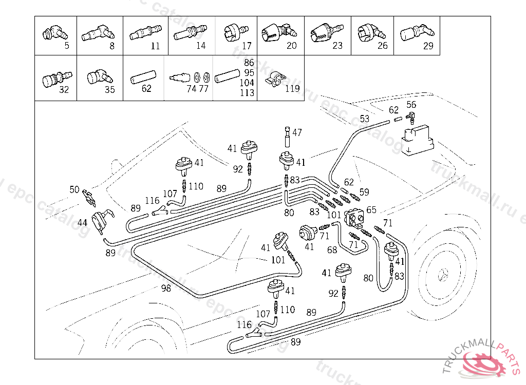 PIPE LINE FROM CHECK VALVE DISTRIBUTOR TO SUPPLY TANK 500 MM, ORDER BY THE METER 114.010 FROM CHASSIS 031062,114.015,017 FROM CHASSIS 033609,114.021 FROM CHASSIS 001552,114.022 FROM CHASSIS 000843,114.023 FR OM CHASSIS 000001 115.010 FROM CHASSIS 034113,115.015 FROM CHASSIS 032215 114.010,021,022 UNTIL PRODUCTION STOP, 114.011 UP TO CHASSIS 108425, 114.015,017 UP TO CHASSIS 245853, 114.023 UP TO CHASSIS 100866 AND FOOTN.63