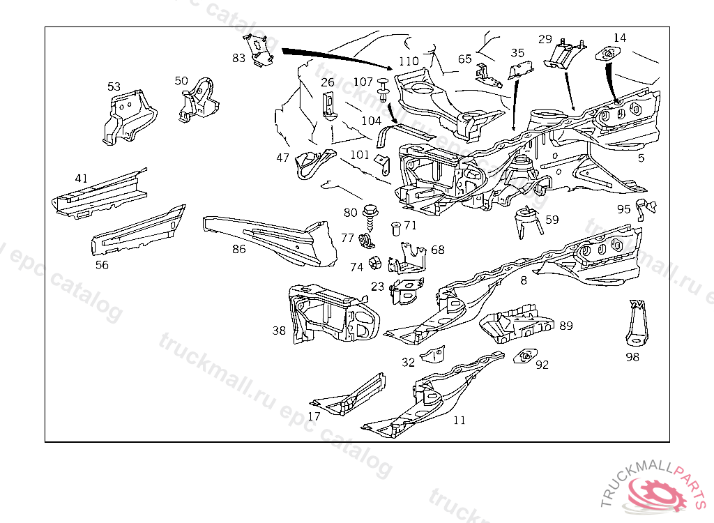 WHEELHOUSE , FIRST EXHAUST STOCK OF OLD PARTS UP TO IDENT NO.F 060628, Replaced By: A1296203661