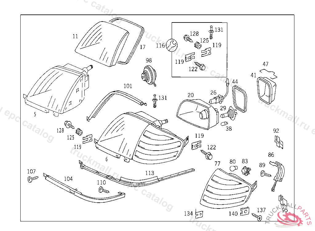 LIGHTING UNIT LEFT, R.H. TRAFFIC, USED WITH SELFLEVELLING DEVICE LESS BLINKERLAMP,F 105259 AUSTRALIAUP TO END MODELYEAR 94