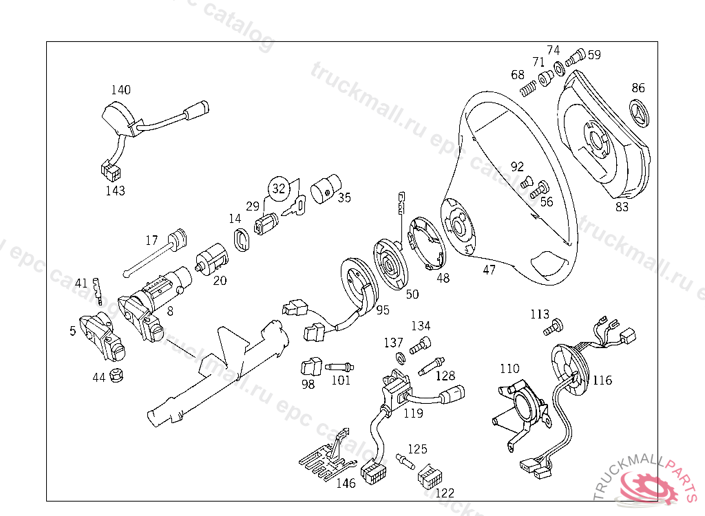 STEERING WHEEL ,A 123446 NO.9045 INO.5070 INO.8310 INO.8317 INO.8317 INO.6121 INO.3111 INO.7102 I....... I, Replaced By: A1404604603, +001A1294640628, +004A1409900120