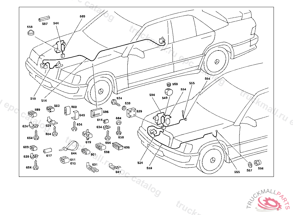 DAMPING STRIP BRAKE LINE TO FIRE WALL, 000 130186 003 066451 007 053318 083 002304 086 001762 093 001874 102,103 113215 105 135079 183 004049 190 005029