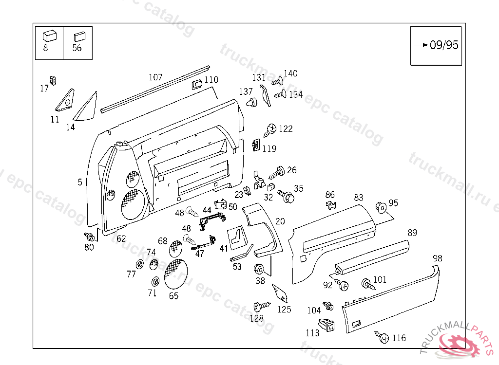 BAFFLE DRIVER'S DOOR,RIGHT,CENTRE,WITH LEATHER OR "EXCLUSIVE" LEATHER TRIM,F 079708 F 125157 EXCEPT CODE 806 ALSO INSTALLED IN VEHICLE FROM F 125158 WITH CODE 805NO.9A84I NO.5A98I NO.8E78I NO.8F19I NO.8F33I NO.6B52I NO.3B32I NO.7C12I IIIIIIIII XX NO LONGER AVAILABLE I