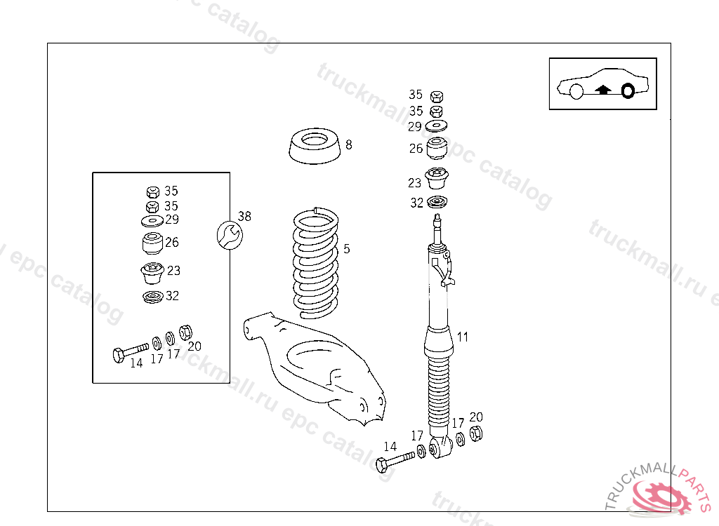 HYDROPN. SPRING LEG RANGE OF DELIVERY, F 125158 ALSO INSTALLED ON WITH CODE 806, Replaced By: A1293201513, +001A1243200356