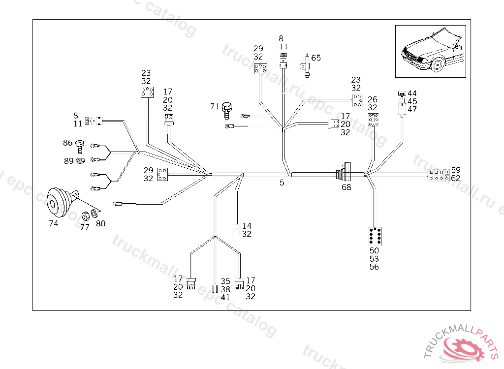 CABLE HARNESS HEADLAMP, F 125157 EXCEPT CODE 806 ALSO INSTALLED IN VEHICLE FROM F 125158 WITH CODE 805 FROM IDENT NO., INTEGRATED ENGINE CABLE HARNESS, REFER TO TU 54/120,121