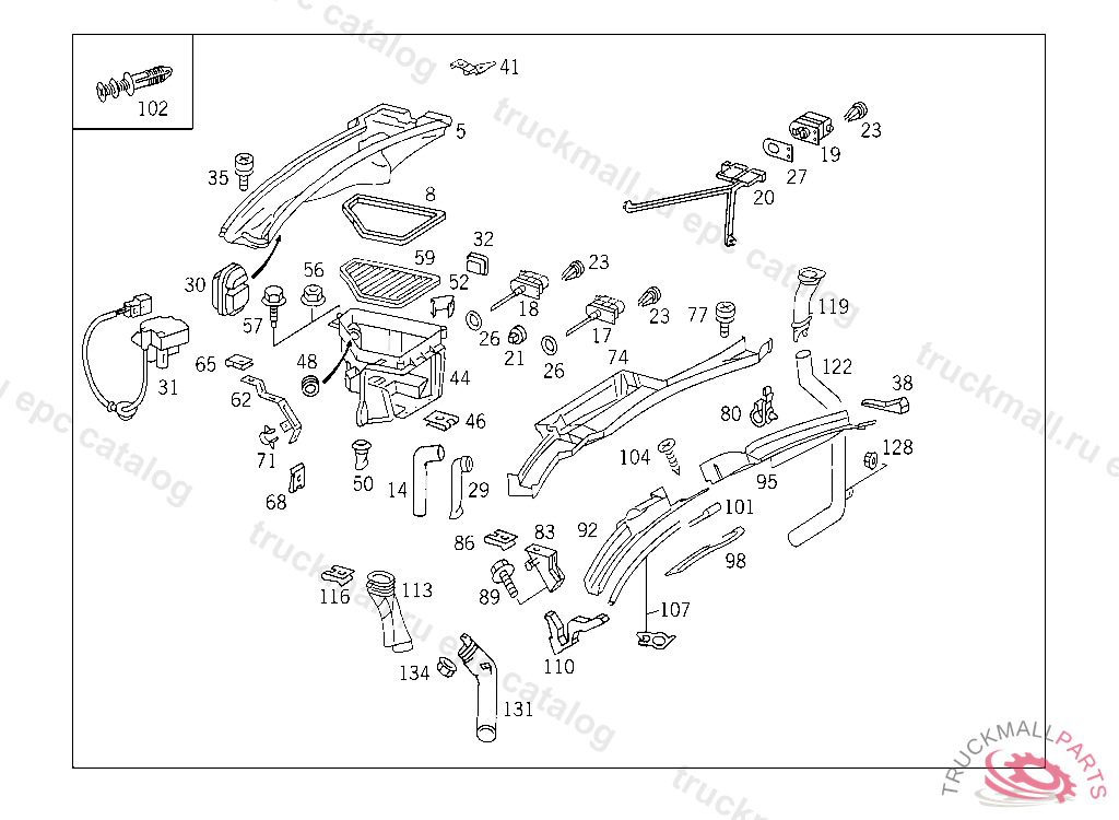 SHELL AT FIRE WALL, A 144703 IF NEW SHELL IS INSTALLED BLOWER CAN NO LONGER BE USED! ORDER 1 X 140 831 41 46 + 1 X 116 987 02 44