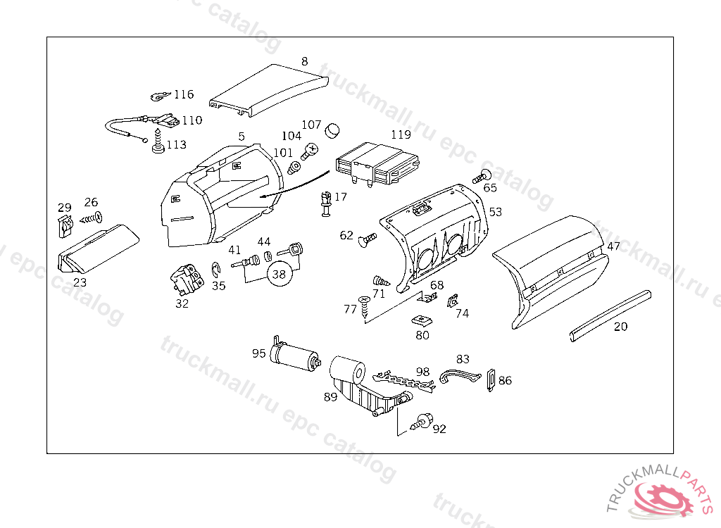 FASTENER SPECTACLE SHELF OPERATG.UNIT,GLOVE COMPTMT.LID,WITH CENTR.LOCKG.MECHANISM "EXCLUSIVE", A 192209 ALSO INSTALLED ON A 159651 - A 192207 WITH CODE 856 AUSTRALIAFROM MODEL YEAR'95 A 368116 EXCEPT FOR A 328811 - A 368115 WITH CODE 041NO.7C41I .......I .......I .......I NO.8F95I .......I .......I NO.7102I I