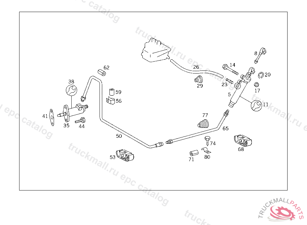 LINE FROM CLUTCH MASTER CYLINDER TO CLUTCH SLAVE CYLINDER, TO BE ADAPTED DURING ASSEMBLY
