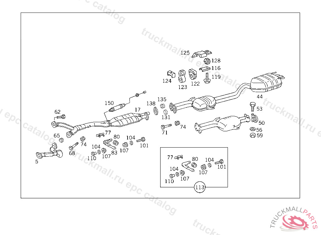 EXHAUST MUFFLER WITH PIPE , FIRST EXHAUST STOCK OF OLD PARTS UP TO IDENT NO. A 306622, Replaced By: A1404903021