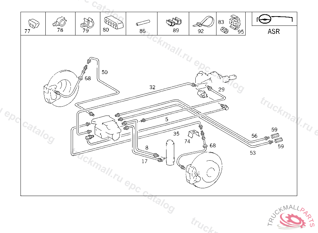 DAMPING STRIP BRAKE LINE TO FIRE WALL, 000 130186 003 066451 007 053318 083 002304 086 001762 093 001874 102,103 113215 105 135079 183 004049 190 005029