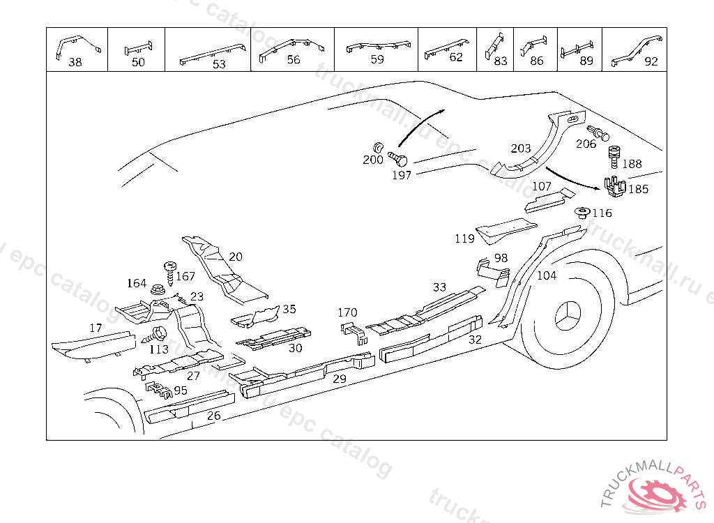 SPRING COVER RAIL ON CABLE DUCT,REAR SIDE MEMBER