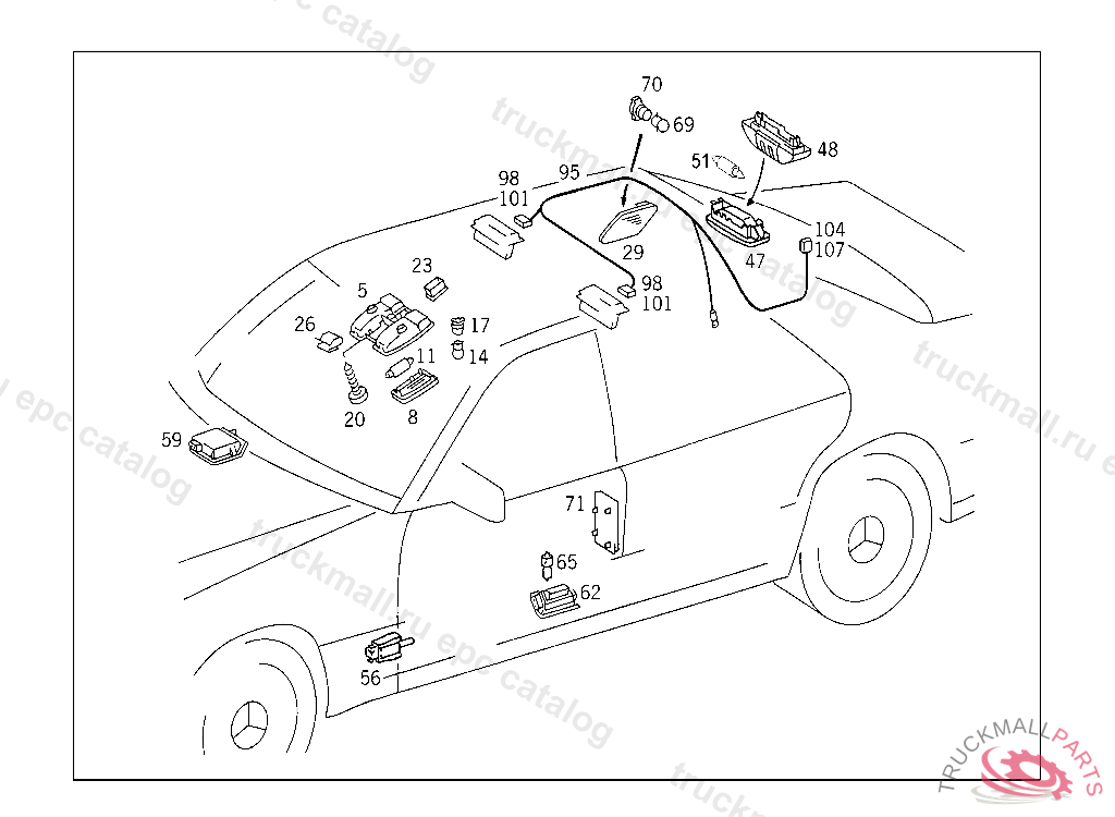 INTERIOR LAMP REAR DOME LAMP, WITH PARKTRONIC SYSTEM,NO.9051I NO.5076II NO.8F20I NO.8F30III NO.7101I NO.7101I NO.8F30I