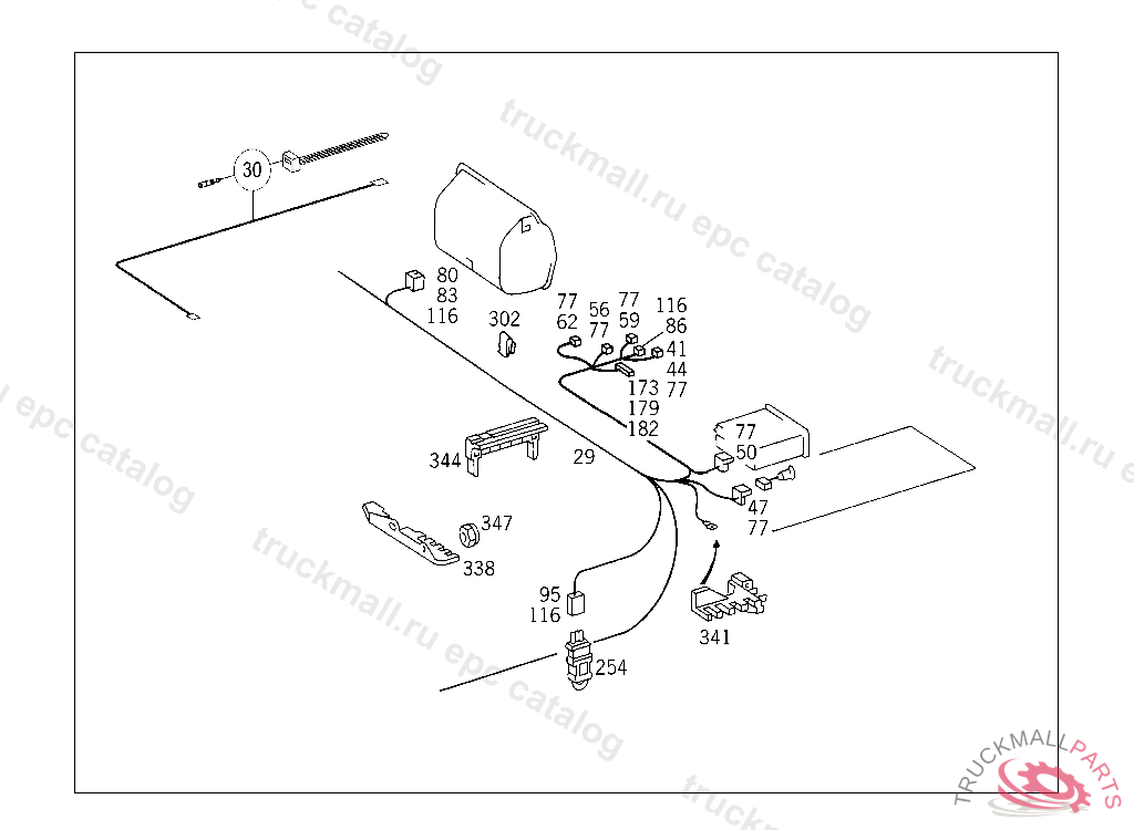 CABLE HARNESS ,A 000297A 086003 EXCEPTA 084211,A 084785. AUSTRALIA UP TO END OF MODELYEAR 92, Replaced By: A1405409705, +001A1405404281