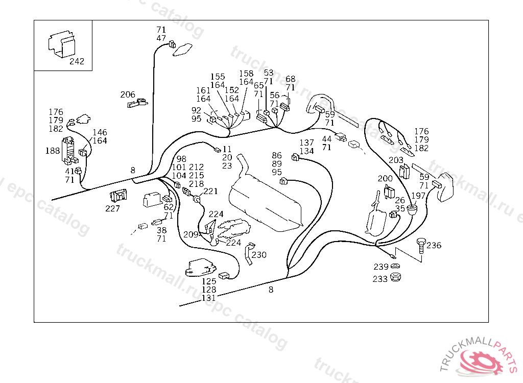 CABLE HARNESS TAIL LAMP CABLE HARNESS,A 086003 EXCEPTA 084211,A 084785. AUSTRALIA UP TO END OF MODELYEAR 92