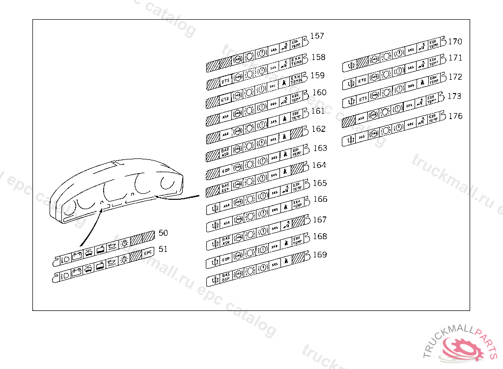 SYMBOL STRIP LEFT, ONLY USED WITH ACCELERATION SKID CONTROL (ASR) A 290167 EXCEPT CODE 805 ALSO INSTALLED IN VEHICLE TO A 290166 WITH CODE 806 A 328810 EXCEPT CODE 807 ALSO INSTALLED IN VEHICLE FROM A 328811 WITH CODE 806
