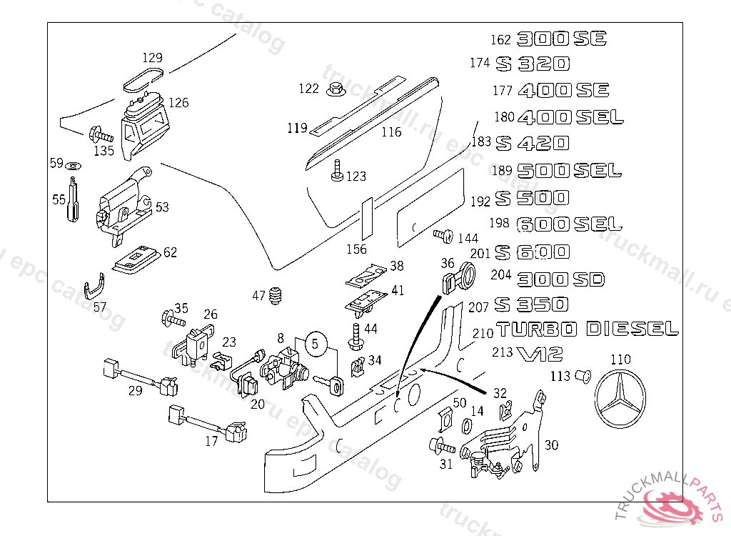 TUMBLER LESS KEY, USED WITH INFRARED CLOSING SYSTEM,A 176318 AUSTRALIAFROM MODEL YEAR'95 A 236206 ALSO INSTALLED ON A 205261 - A 236204 WITH CODE 030 SEE FOOTNOTES : 051 / 407 THEFT-RELEVANT PART