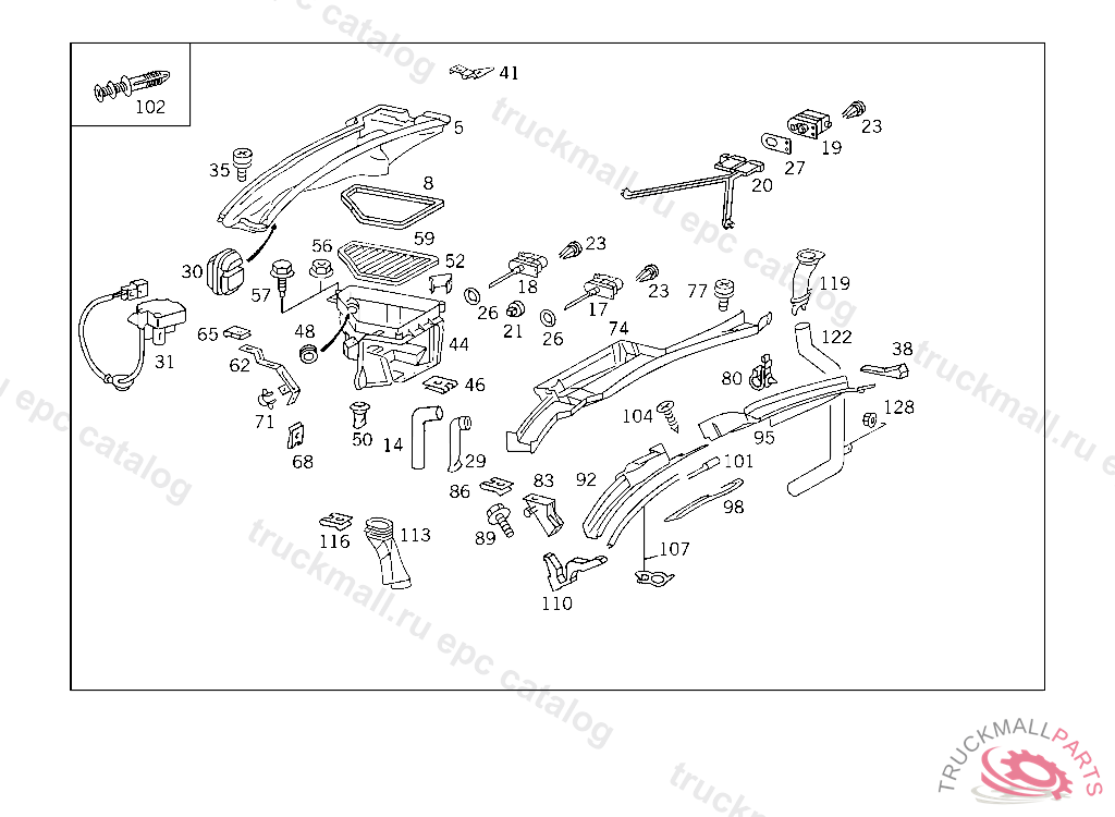 SHELL AT FIRE WALL, A 144703 IF NEW SHELL IS INSTALLED BLOWER CAN NO LONGER BE USED! ORDER 1 X 140 831 41 46 + 1 X 116 987 02 44