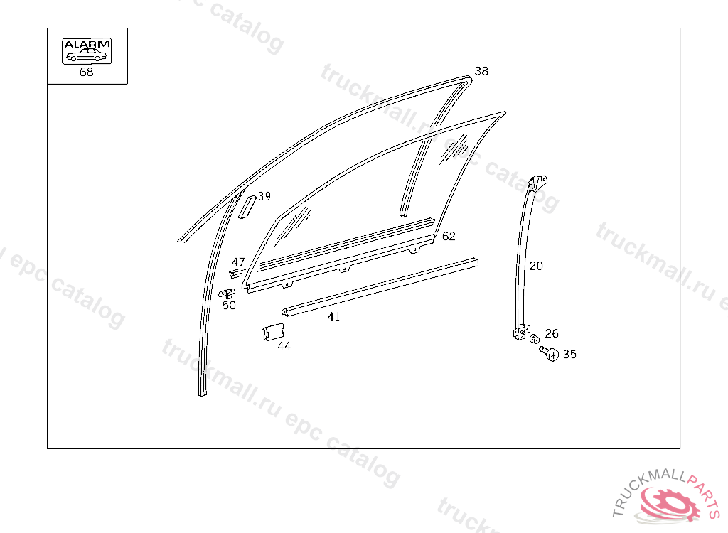 CRANK OPERATED WINDOW LEFT FRONT DOOR,HEAT-ABSORBING, A 238344 EXCEPT FOR A 205261 - A 236204 WITH CODE 030 ALSO INSTALLED ON A 236914 AUSTRALIA UP TO END OF MODELYEAR 95