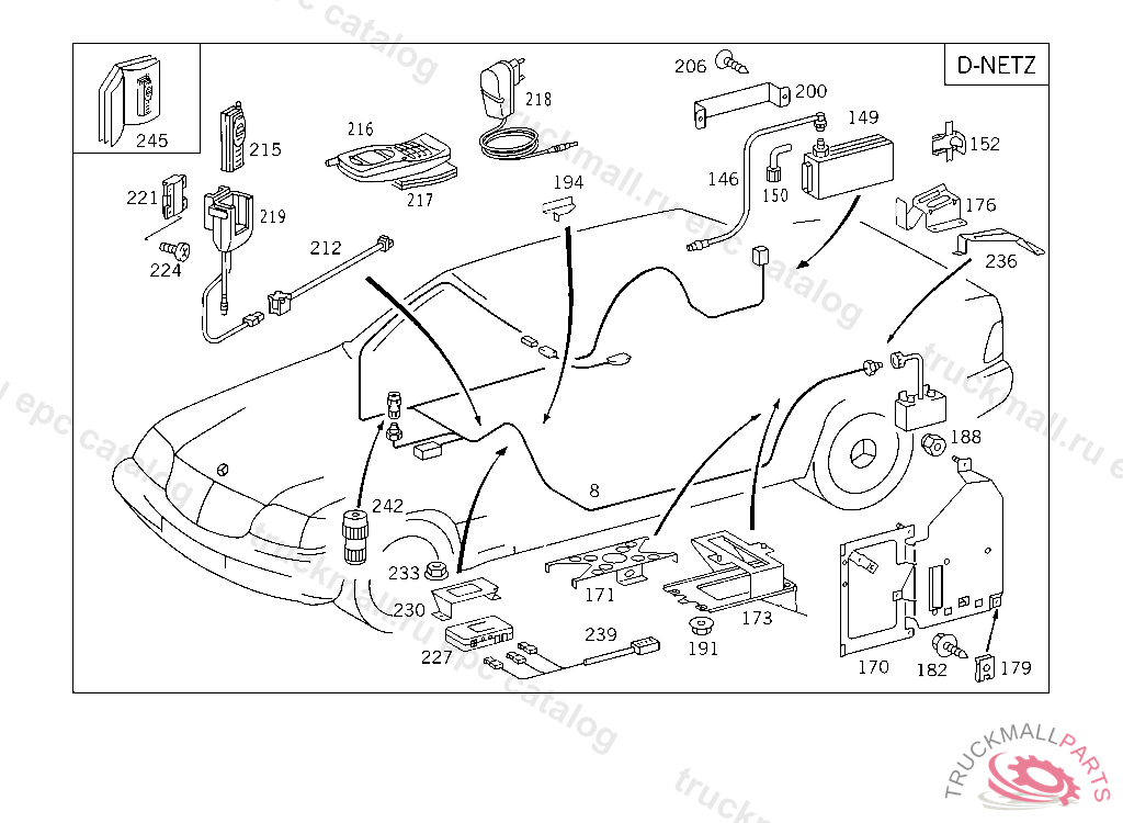 TELEPHONE TRANSMITTER-RECEIVER AEG, A 192209 ALSO INSTALLED ON A 159651 - A 192207 WITH CODE 856 AUSTRALIAFROM MODEL YEAR'95 PART IS ONLY OR ALSO SUPPLIED AS RECONDITIONED PART