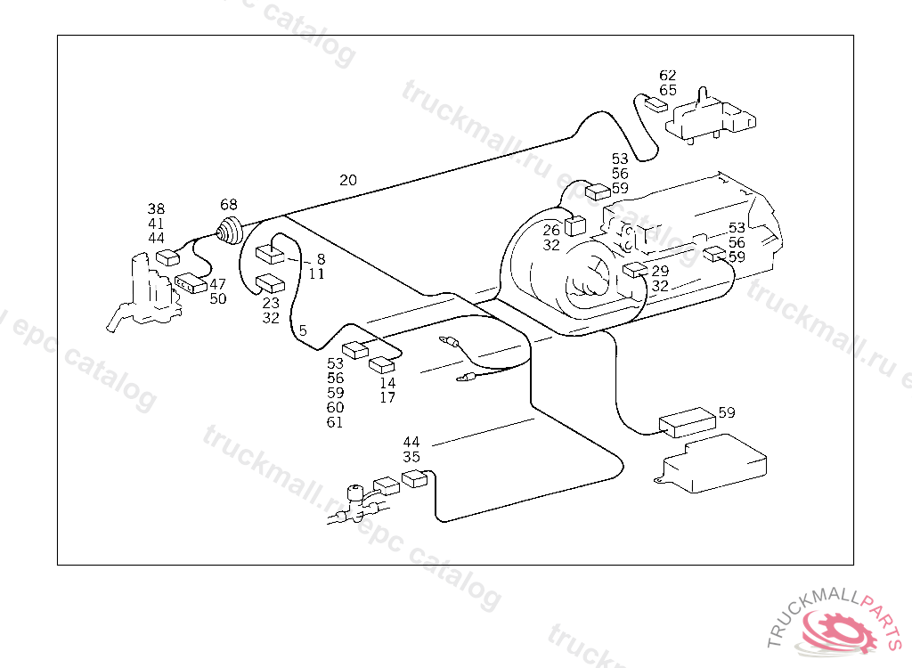 CABLE HARNESS REAR SPACE AIR CONDITIONER, A 151632 EXCEPT FOR A 147846, CODE 804 ALSO INSTALLED IN VEHICLE FROM A 151633 WITH CODE 803 AUSTRALIAUP TO END MODELYEAR 93