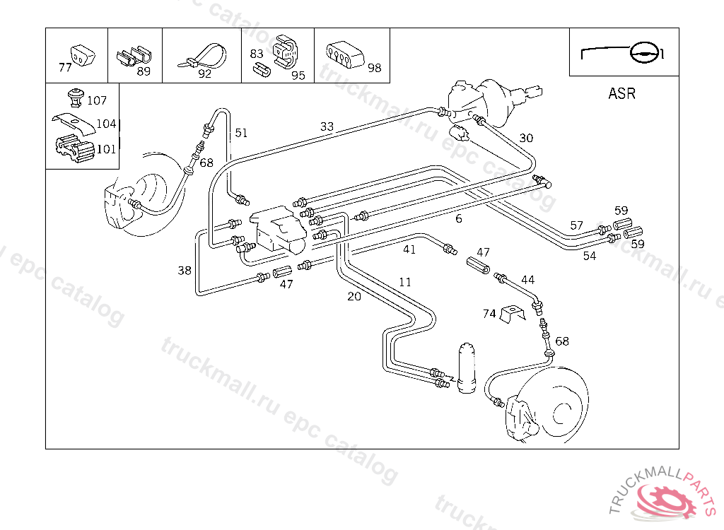 DAMPING STRIP BRAKE LINE TO FIRE WALL, 000 130186 003 066451 007 053318 083 002304 086 001762 093 001874 102,103 113215 105 135079 183 004049 190 005029