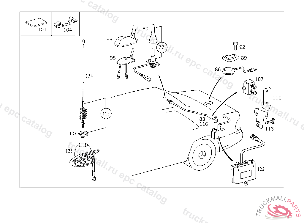 ANTENNA REAR LID GPS, A 358832 EXCEPT FOR VEHICLES WITH CODE 057