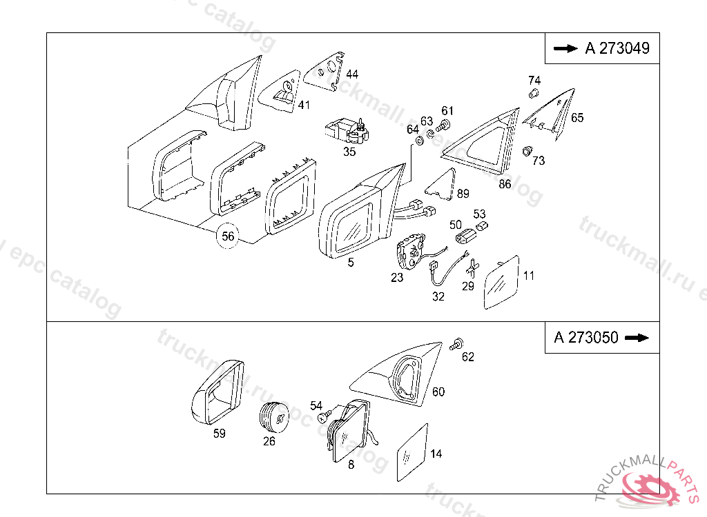 MIRROR WITHOUT CASING,RIGHT,A 273050 A 378019 EXCEPT CODE 808 ALSO INSTALLED IN VEHICLE FROM A 378020 WITH CODE 807