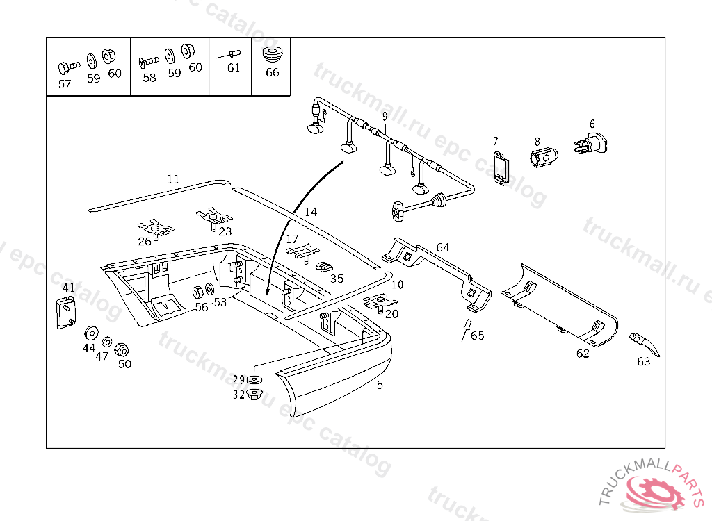 REAR BUMPER FACE BAR PARKTRONIC SYSTEM (PTS) GEPRIMERT, FOR COLOR NUMBERS AND PAINT CODES USED FOR OUTSIDE PARTS,SEE FOOTNOTE 911 TO BE PAINTED PRIOR TO INSTALLATION A 328811 EXCEPT CODE 806 ALSO INSTALLED IN VEHICLE TO A 328810 WITH CODE 807