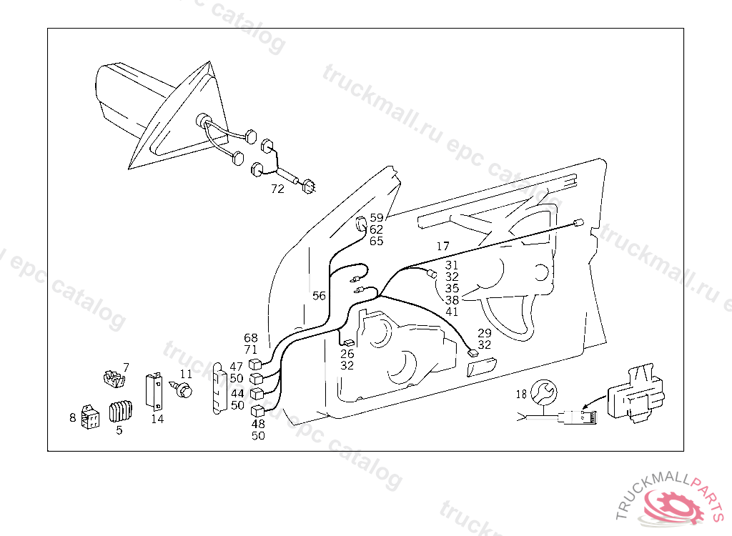 CABLE HARNESS OUTSIDE REARVIEW MIRROR ELECTRICALLY ADJUSTABLE AND HEATED, A 290166 EXCEPT CODE 806 ALSO INSTALLED IN VEHICLE FROM A 290167 WITH CODE 805