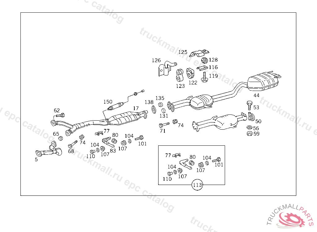EXHAUST MUFFLER WITH PIPE , FIRST EXHAUST STOCK OF OLD PARTS UP TO IDENT NO. A 306622, Replaced By: A1404903021