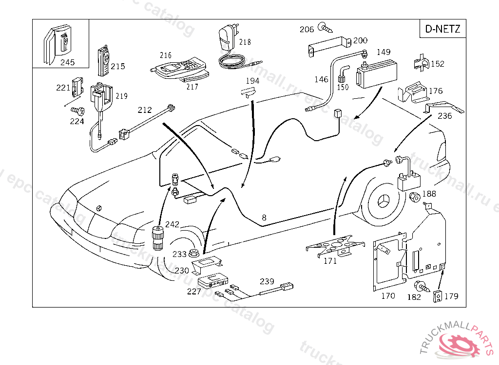 TELEPHONE TRANSMITTER-RECEIVER AEG, A 192209 ALSO INSTALLED ON A 159651 - A 192207 WITH CODE 856 AUSTRALIAFROM MODEL YEAR'95 PART IS ONLY OR ALSO SUPPLIED AS RECONDITIONED PART