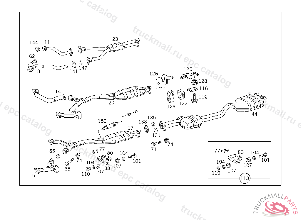 EXHAUST MUFFLER WITH PIPE , FIRST EXHAUST STOCK OF OLD PARTS UP TO IDENT NO. A 306622, Replaced By: A1404903021