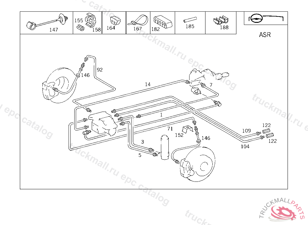 DAMPING STRIP BRAKE LINE TO FIRE WALL, 000 130186 003 066451 007 053318 083 002304 086 001762 093 001874 102,103 113215 105 135079 183 004049 190 005029