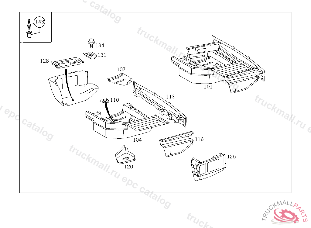 FLOOR , FIRST EXHAUST STOCK OF OLD PARTS UP TO IDENT NO. A 144703, Replaced By: A1406101761