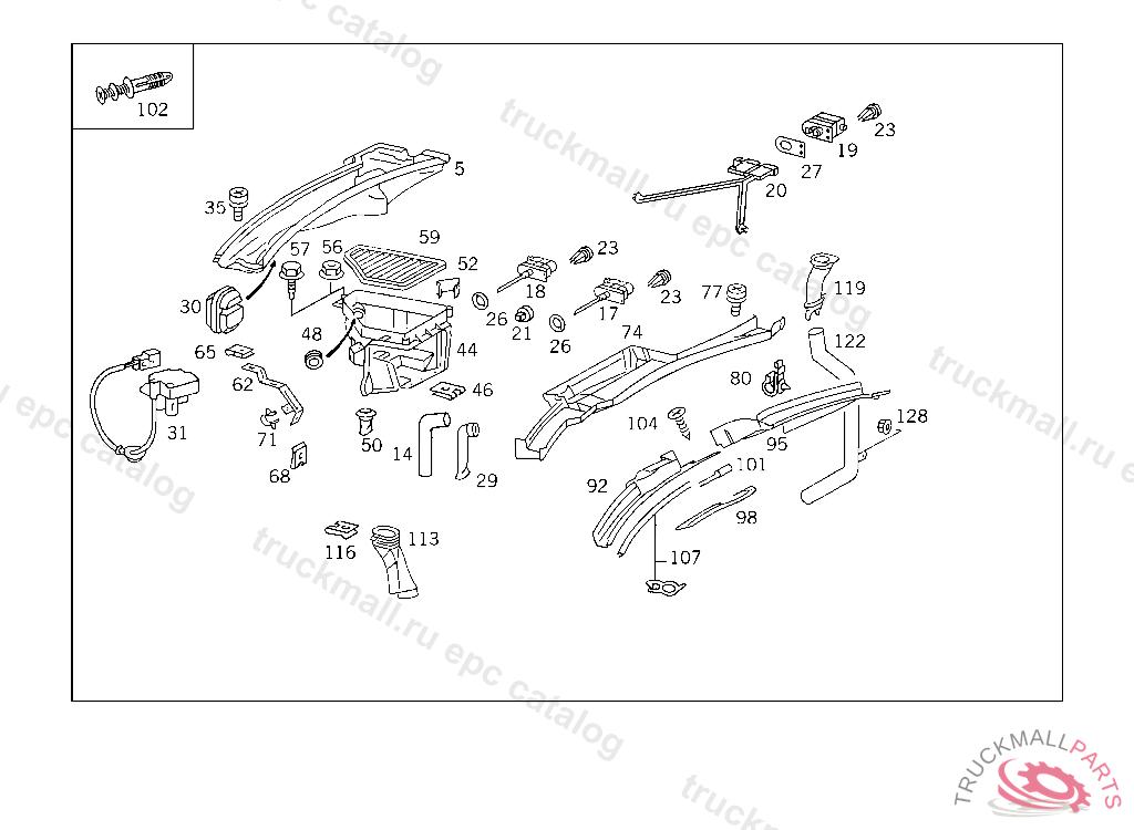 SHELL AT FIRE WALL, A 144703 IF NEW SHELL IS INSTALLED BLOWER CAN NO LONGER BE USED! ORDER 1 X 140 831 41 46 + 1 X 116 987 02 44