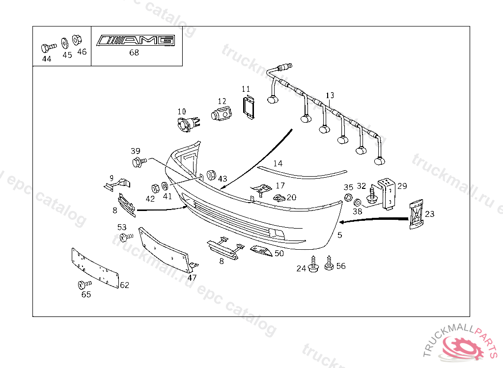 FRONT BUMPER FACE BAR PARKTRONIC SYSTEM (PTS) GEPRIMERT, FOR COLOR NUMBERS AND PAINT CODES USED FOR OUTSIDE PARTS,SEE FOOTNOTE 911 TO BE PAINTED PRIOR TO INSTALLATION A 328811 EXCEPT CODE 806 ALSO INSTALLED IN VEHICLE TO A 328810 WITH CODE 807