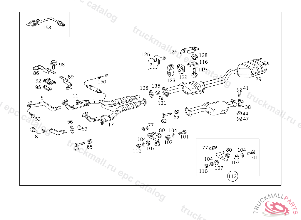 EXHAUST MUFFLER WITH PIPE , FIRST EXHAUST STOCK OF OLD PARTS UP TO IDENT NO. A 306622, Replaced By: A1404902521
