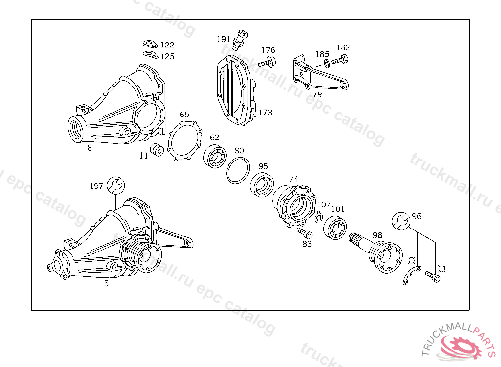 HOUSING REAR AXLE HOUSING WITH DIFFERENTIAL ASR 1:2.65, UP TO IDENT NO. A 212244 EXCEPT FOR A 187334 - A 212243 WITH CODE 867 PART IS ONLY OR ALSO SUPPLIED AS RECONDITIONED PART