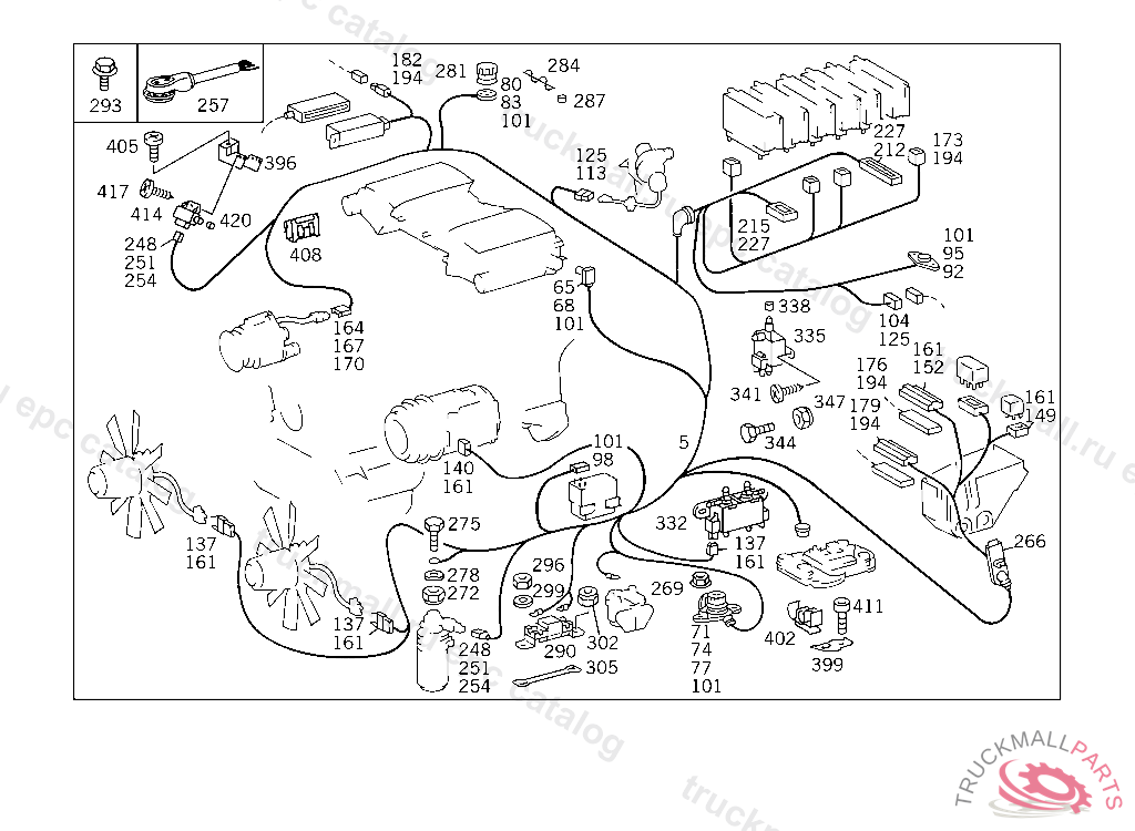 CABLE HARNESS ENGINE CABLE HARNESS,BODY MOUNTED, USED WITH AIR CONDITIONER, A 212245 ALSO INSTALLED ON A 187334 - A 212243 WITH CODE 867 A 236205 EXCEPT FOR A 205261 - A 236204 WITH CODE 030