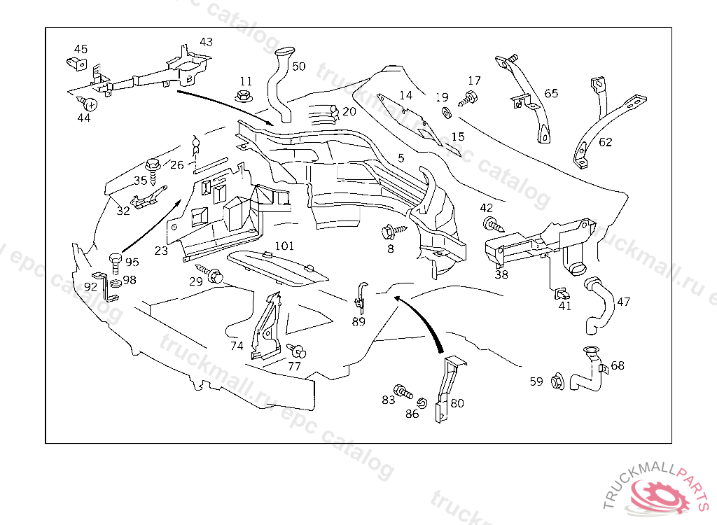 TREENAIL BRACKET TO FIRE WALL, Replaced By: A6399980185