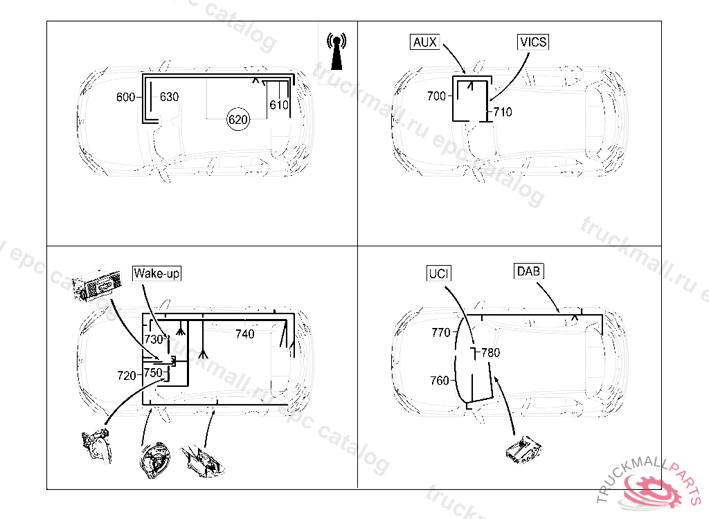 ELECTRICAL WIRING HARNESS GPS ANTENNA, EMERGENCY CALL SYSTEM, ANTENNA SPLITTER, OPERATING UNIT