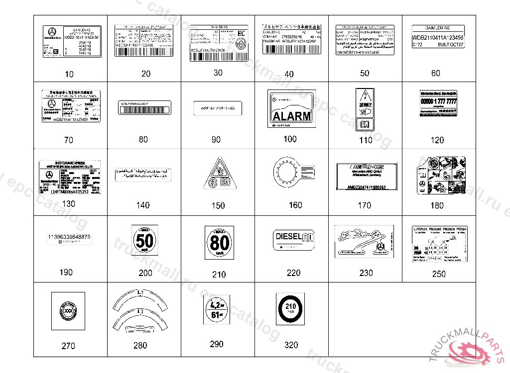 MODEL PLATE AT B-PILLAR WITH MANUFACTURER NAME DAIMLER AG, THEFT-RELEVANT PART