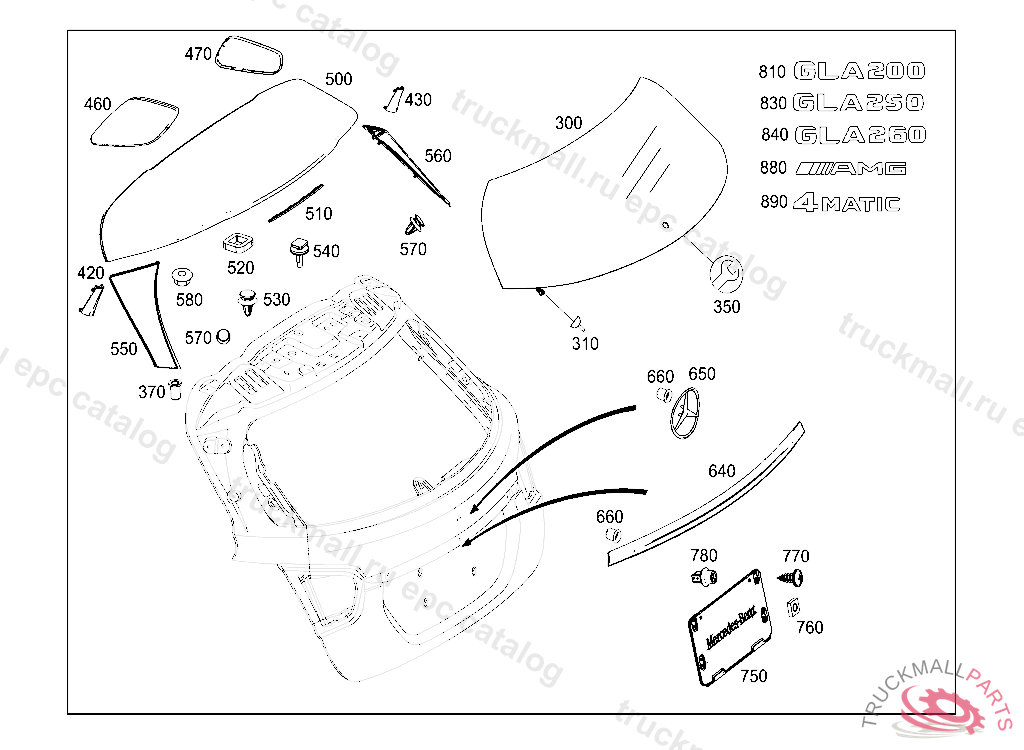 MODEL PLATE AT REAR PANEL DOOR GLA 260