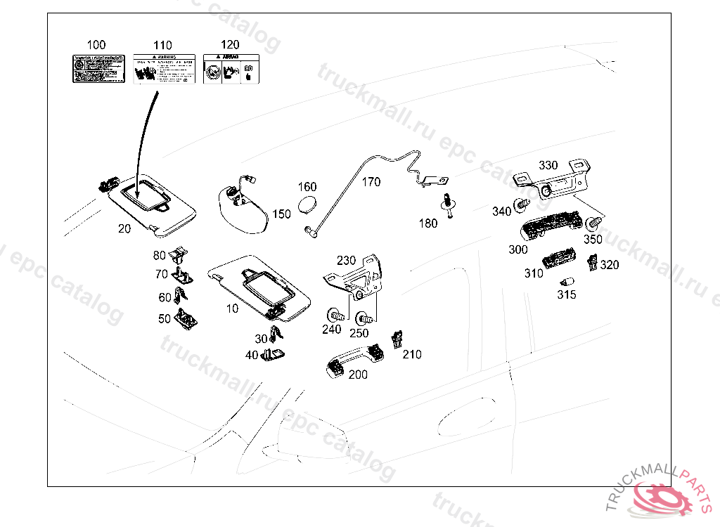 69 PANELLING AND LINING - 018 SUN VISOR,INTERIOR MIRROR, GRAB HANDLE